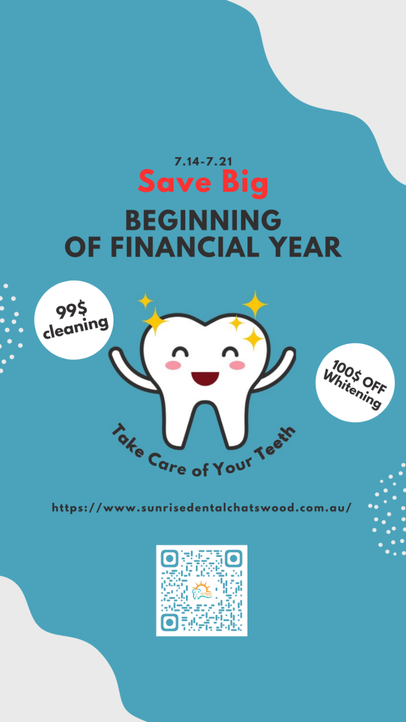 Sunrise Dental Chatswood is giving out 100$ voucher for teeth whitening on the begining of the finantial year(July 14-21), and a limitted offer of $99 Full dental Clean. With experienced care like Sunrise Dental Chatswood, we can provide best experience service and make your smile shine bright. Do not miss the BOFY offer if you need dental service! Check out our website to make an appointment now!